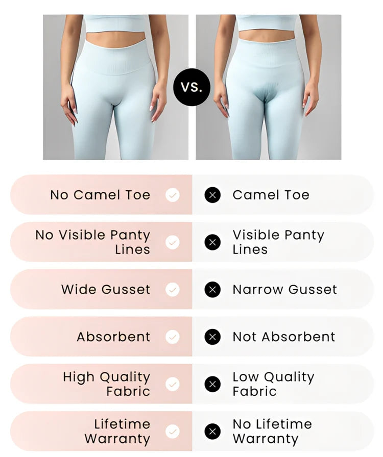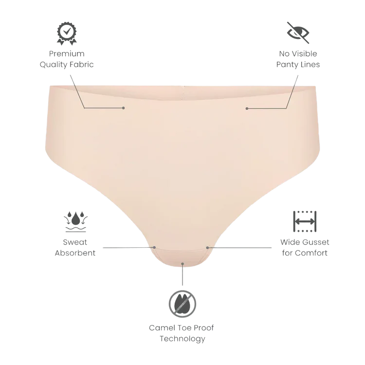 Camel Toe Proof Technology | Seamless | Wide Absorbent Gusset | High Rise